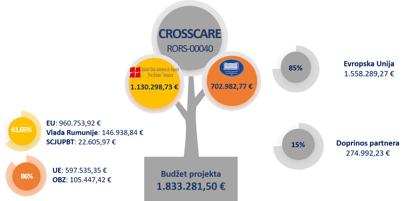 Ukupna prihvatljiva vrednost projekta je 1.833.281,50 evra, od čega 1.558.289,27 evra predstavlja finansijsku podršku Evropske Unije.